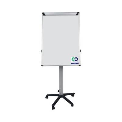 Bi-Office Earth Flipchart Mobile Non-Magnetic Easel with a slim aluminium frame. The drywipe surface is suited for moderate use, easy to write on and to clean. Portable and versatile, this easel is the right choice for presentations. You can use our whiteboard to write or draw on a flipchart pad or directly on the board. Get the best results by mixing different methods, making communication more efficient. Dynamic companies can improve efficiency and manage space according to the needs of the moment. Fully mobile with 5 locking casters, its easy to carry to any required location because of its lightweight yet sturdy and durable structure with black details. Take it to any workspace, office or meeting room, and brainstorm and present ideas. Also, the board angle adjustment allows you to set it to the desired ergonomic position for the user. Includes an adjustable clamp to use with Euro flipchart pads and a full-length pen tray for the flipchart or drywipe markers. The Earth easel is a Cradle to Cradle certified product. Its recycled and recyclable components match our companys green mindset. Protecting our planet starts with each one of us: making sustainable choices is how you change the world for the better.
