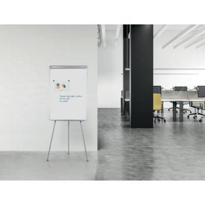 - Ideal for meetings and brainstorming, this Bi-Office Design Tripod Easel has a durable and stable stand made from touch anodized aluminium. Simply place a flipchart pad into the flip-up clamp and adjust the height of the easel legs to suit you. You can hang pages on the extendable side arms for additional useable space or write with drywipe markers on the backup whiteboard. This item includes a pen tray for marker storage.