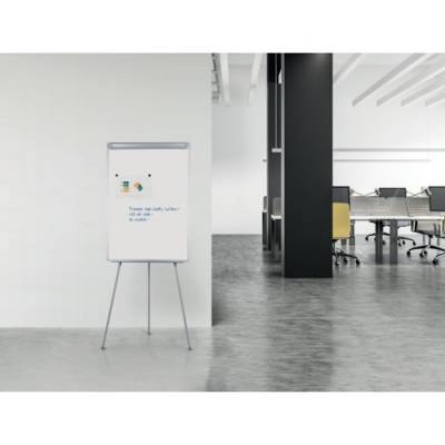 Upgrade your display with the Bi-Office Economic tripod flipchart easel. This flipchart is designed with a durable black plastic frame which looks great in offices or presentation rooms. It is very easy to assemble and is height adjustable so you can always find that perfect position to suit you. The magnetic dry-wipe lacquered steel surface is suited for frequent use (10-year warranty). You can write and draw, erase it and do it all over again. Brainstorm ideas and plan. Better explain a subject and let creativity flow. Use it as a chores board and write down memos. All in one place. You can also enhance your presentations by using magnets to display information, post notes or pictures. The writing surface is compatible with dry-wipe markers, magnets, erasers, and wipes, and includes a tray to hold accessories. The product is also durable, lightweight and easily transportable to any location where required, and therefore an excellent product for the office or meeting rooms.