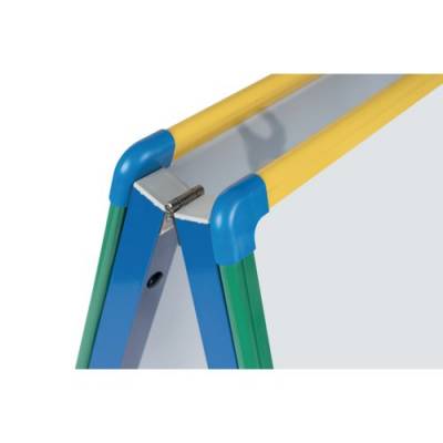 | Lightweight and foldable A-frame easel to be used with drywipe markers and erasers, with top hooks for paper sheets |