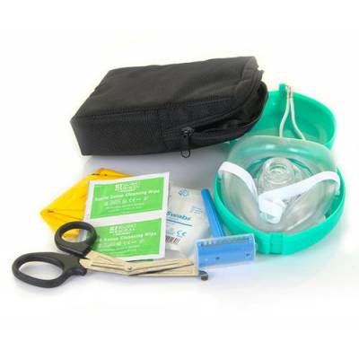 This CPR Rescue Ready Prep Kit comprises of the essential products to assist the rescuer in preparing the casualty before they apply AED electrodes to the victim for defibrillation. With everything you could possibly need included in one handy kit, this product allows you to set up the patient's chest easily to ensure the most effective shock can be delivered to the casualty. From cutting through clothes with the included tuffcut scissors, shaving any body hair and wiping away any water or sweat with the sterile gauze swabs, you can have confidence that you're fully equipped to provide the essential prep to a victim of cardiac arrest before the electrodes are positioned. Also includes CPR facemask with a one way valve which prevents cross infection when giving mouth to mouth resuscitation. Supplied in our deluxe bag with belt loop and internal webbed pockets. Bag can be own branded with customer logo (min order 50 kits) Contents:, 1 x CPR Facemask, 2 x Sterile Saline Wipes, 1 x Pack of 5 x 5 cm Sterile Gauze Swabs, 1 x pair tuffcut scissors, 1 x prep razor, 1 x biohazard bag, 1 x pair nitrile disposable gloves, 1 x Foil blanket