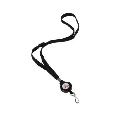 - Ideal to use with security badges and passes, these Announce Textile Lanyards and Badge Reels are suitable for badges of different sizes. The badge reels extend to 600mm with a lanyard length of 440mm to fit comfortably around your neck with a safety snap clasp to avoid choking and discomfort. Supplied in a pack of 10 black lanyards with badge reels.